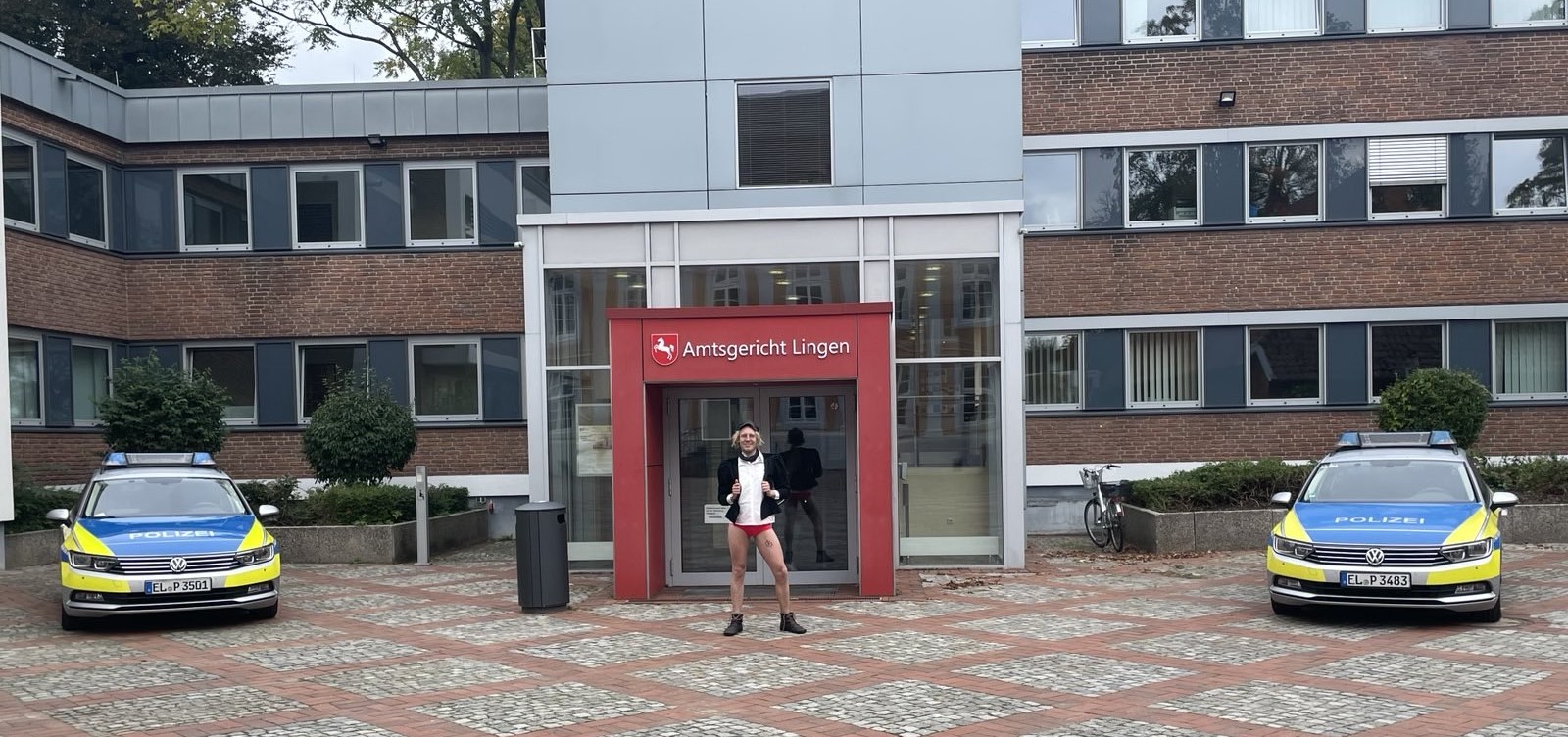 Bericht von einer wirklich überflüssigen, aber sehr lustigen Gerichtsverhandlung, in der die meisten Anwesenden weniger Kleidung tragen als es die Norm ist. Weil es im vorausgegangenen Strafprozess, an dem sich die aktuelle Verhandlung aufhängt, um Anti-Atom-Protest bei der Lingener Brennelemente-Fabrik gegangen war, fand die Verhandlung am 08.10.2025 am AG Lingen statt.